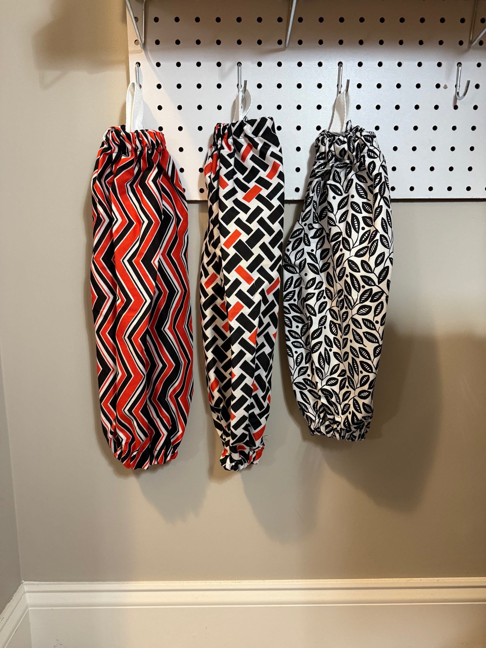 Tame your plastic bag chaos in style with these handmade grocery bag holders! These practical, fabric sleeves make storing and dispensing plastic shopping bags neat and effortless. Simply stuff bags in the top and pull them out from the bottom whenever you need one.